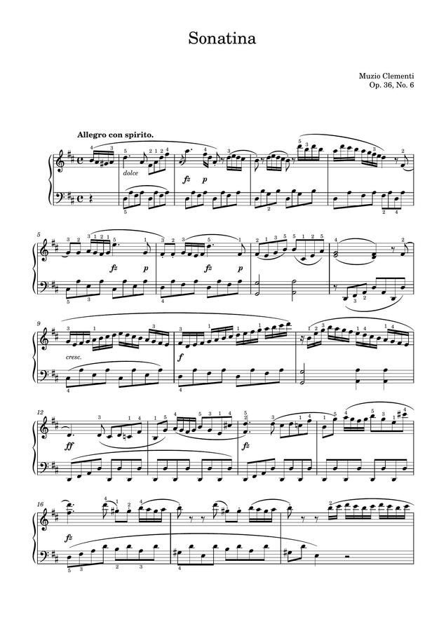 무치오 클레멘티의 피아노 소나티네 Op. 36, No. 6입니다.