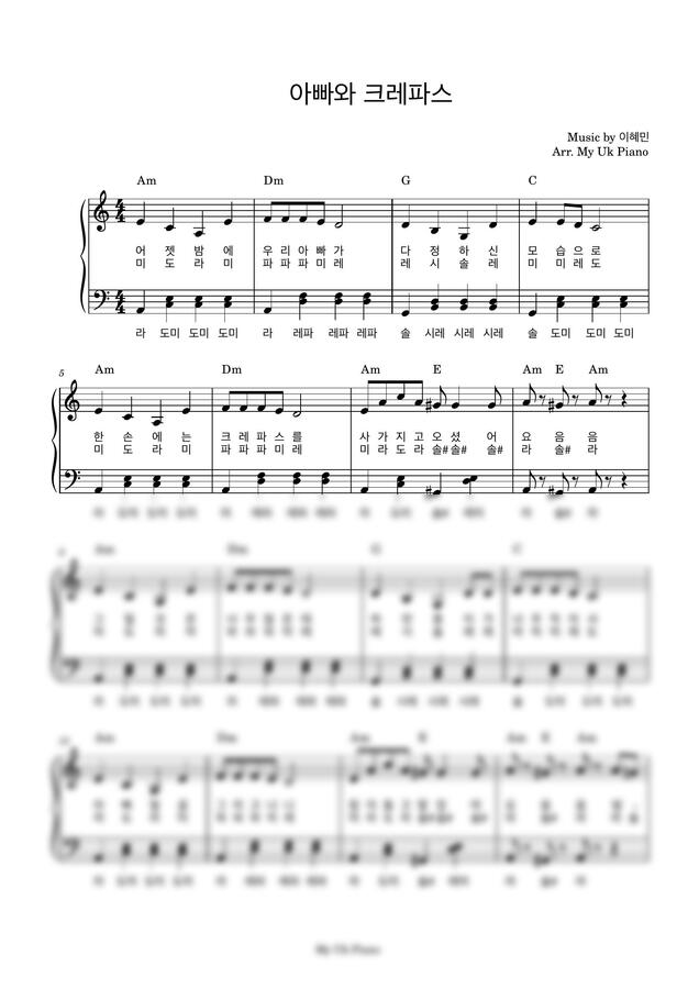 아빠와 크레파스 (쉬운계이름악보) by My Uk Piano