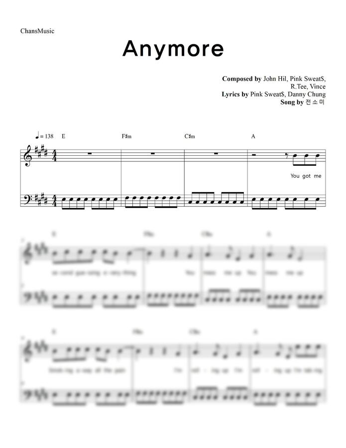 전소미 (JEON SOMI) - Anymore (가사, 쉬운 악보) by 찬스뮤직