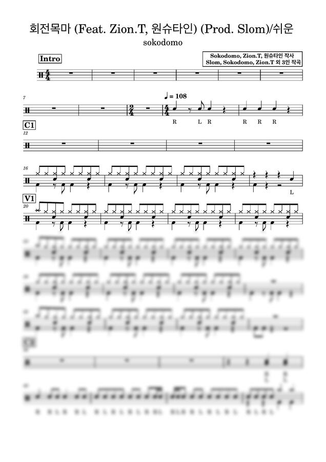 sokodomo - 회전목마 (Feat. Zion.T, 원슈타인) (Prod. Slom) 드럼악보입니다!