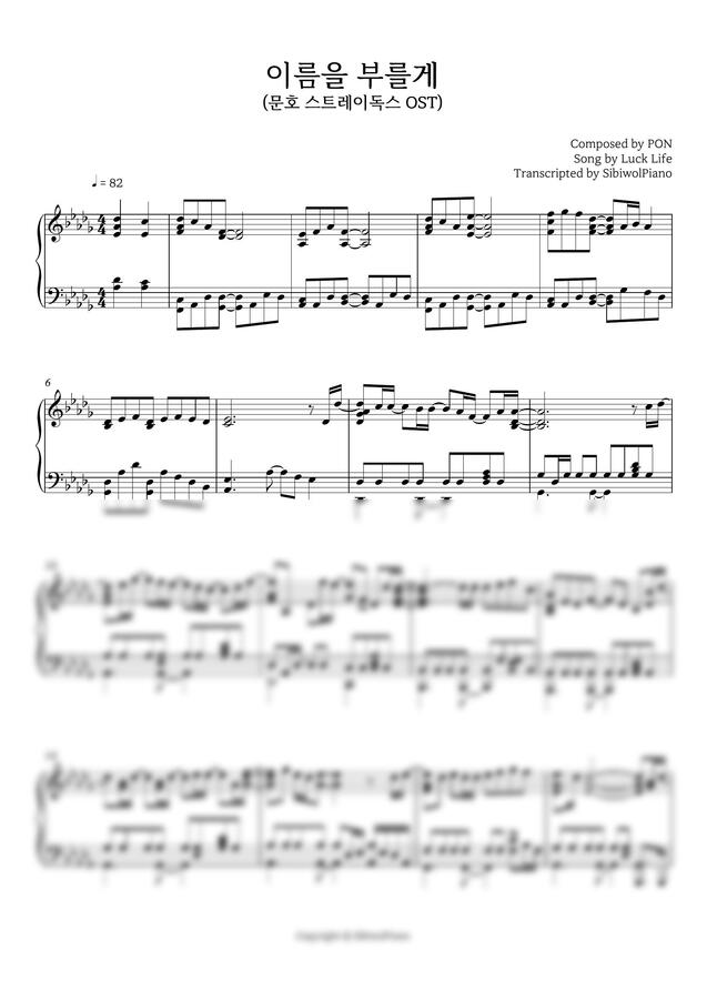 문호 스트레이독스의 엔딩곡 '이름을 부를게' 악보입니다.