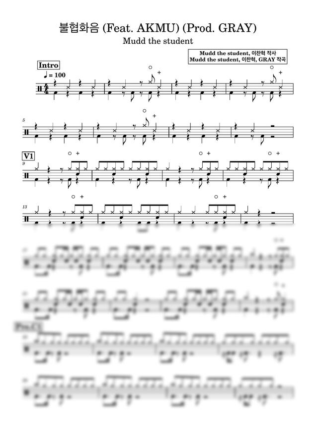 Mudd the student - 불협화음 (Feat. AKMU) (Prod. GRAY) (드럼악보) by Drummer KWI 1p 미리보기
