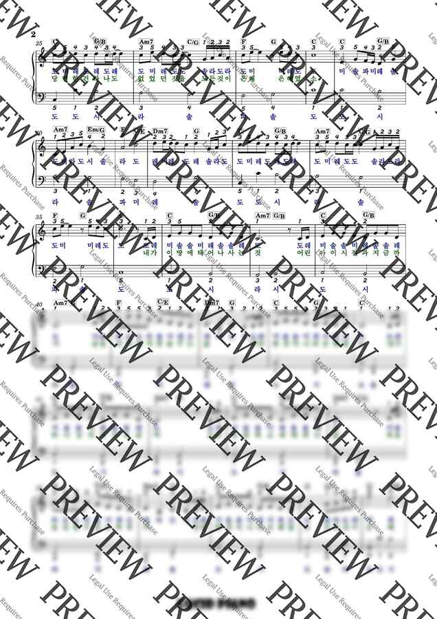 2. 일반 악보 - 계이름이 표시되어 있지 않은 악보로 손가락 번호와 가사,코드는 포함되어 있는 악보입니다. (3p)