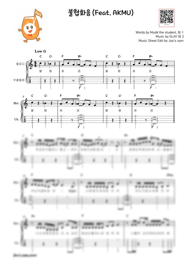 머드 더 스튜던트 - 불협화음 (Feat.AKMU) (우쿨렐레악보) by Joo's sam/쥬스쌤0