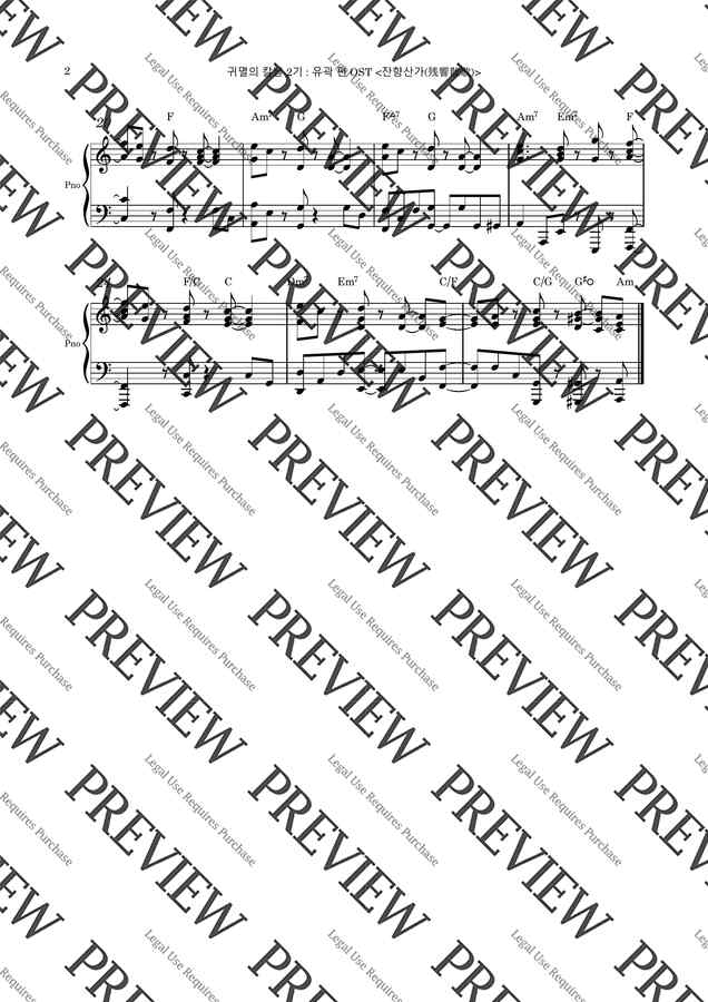 귀멸의 칼날 OST - 残響散歌 (잔향산가) (C key, 중급 악보) by 신디는못말려0