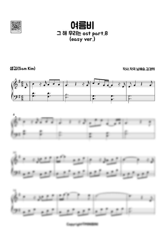 샘김 - 여름비 (그 해 우리는 OST, 쉬운악보) by MINIBINI