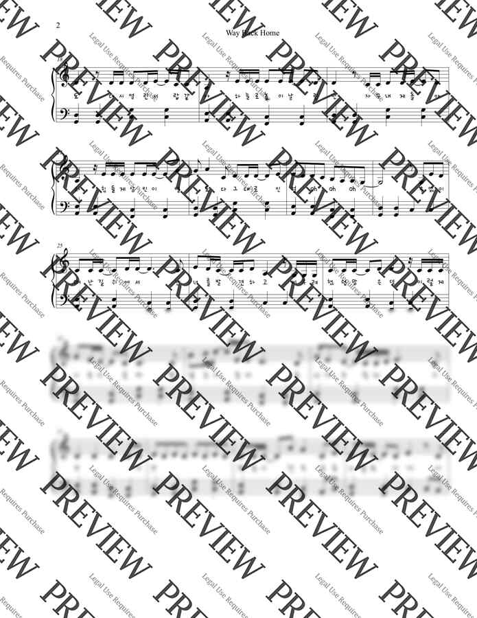 숀 (SHAUN) - Way back home (다장조 쉬운악보, 가사포함) by 엘림피아노