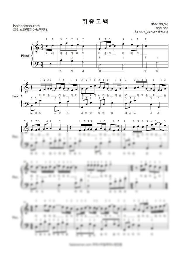 멜로망스(김민석) - 취중고백 (손가락번호,계이름악보) by 프리스타일피아노맨닷컴1