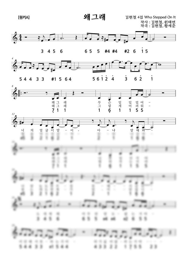 김현철의 "왜그래" 하모니카 숫자 악보입니다.