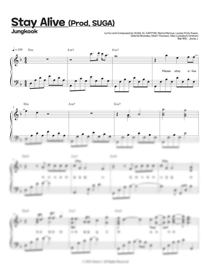 정국 - Stay Alive (Prod. SUGA) 악보입니다