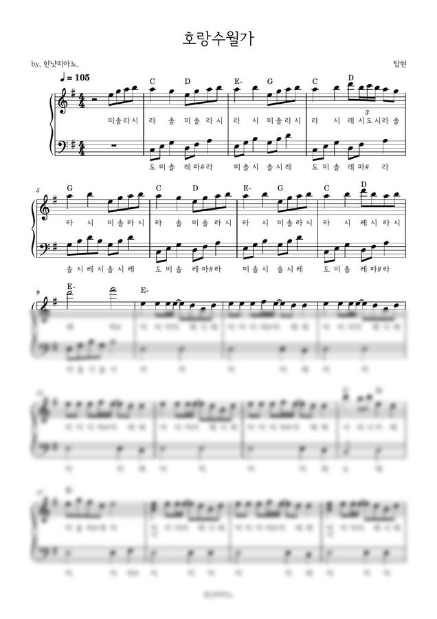 탑현 - 호랑수월가 (계이름 쉬운악보) by 한냣