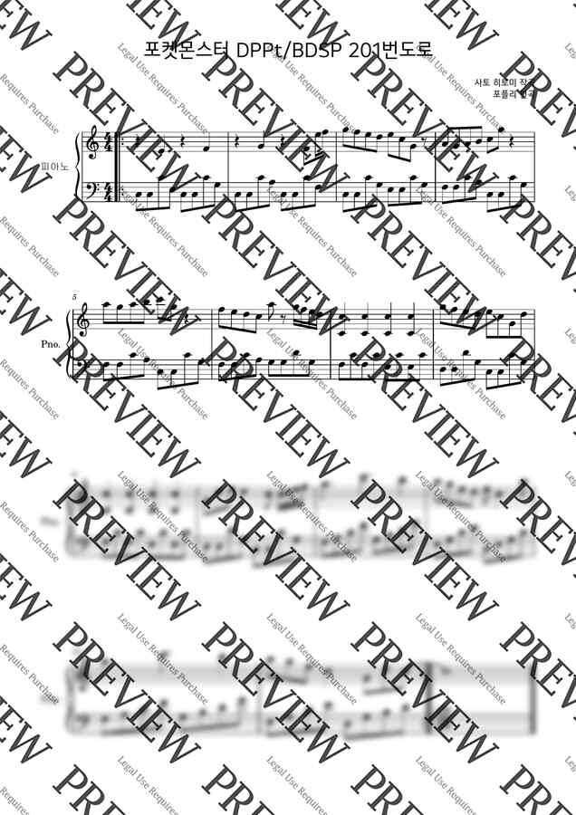 포켓몬스터 DP(디아루가, 펄기아) PT(기라티나), 브릴리언트 다이아몬드, 샤이닝 펄 버전(DPPt, BDSP) 201번도로, 202번도로에서 사용된 BGM을 피아노 악보로 옮겨보았습니다.
