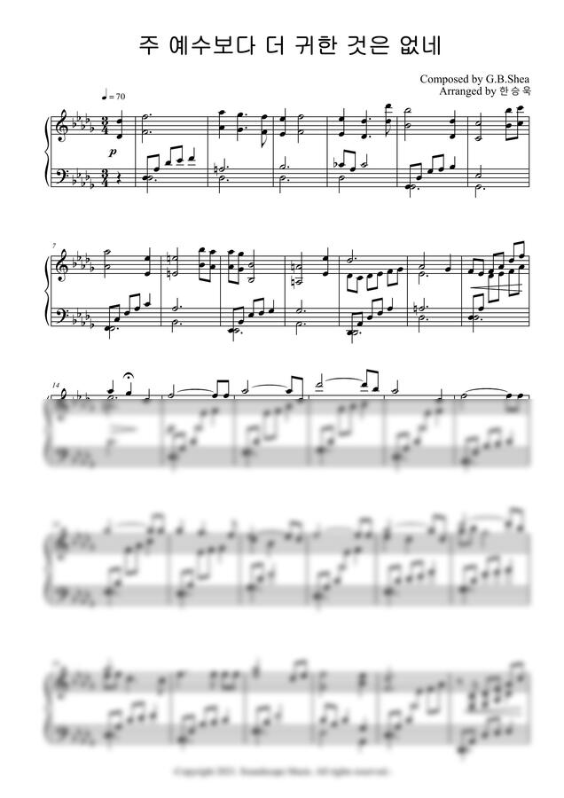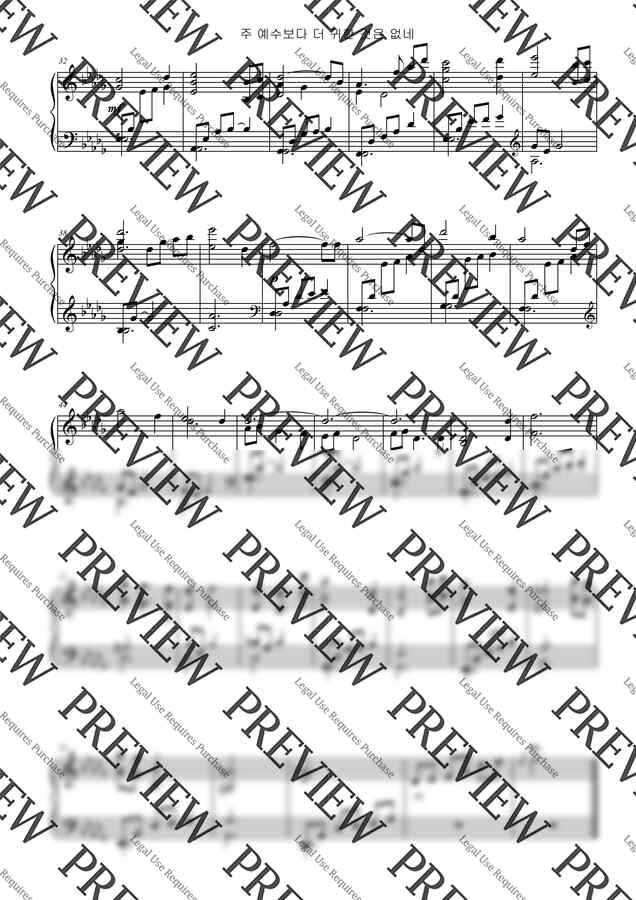 찬송가 [주 예수보다 더 귀한 것은 없네]의 피아노 연주 악보입니다.