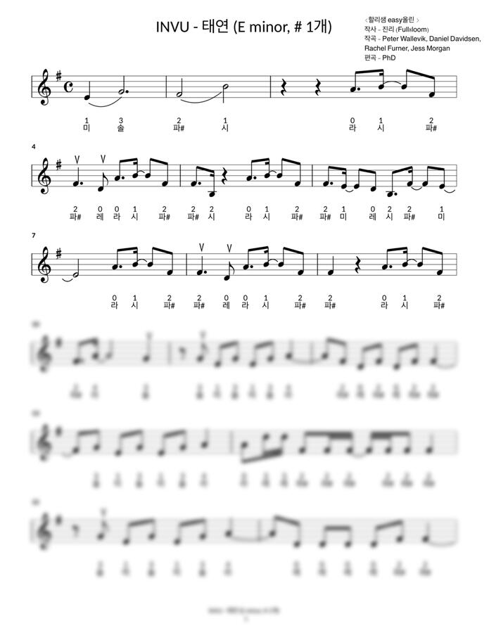 태연 (TAEYEON) - INVU (em/#1개, 손가락번호,계명보) by 할리샘 easy올린1