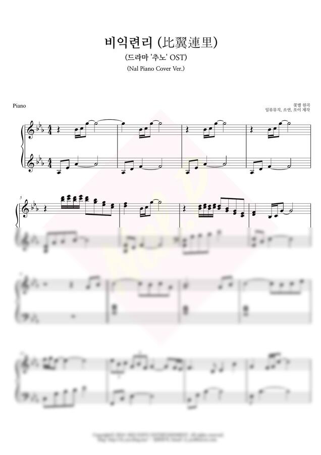 추노 OST - 비익련리 (比翼連里) (중급 악보) by 쏘연/쪼이