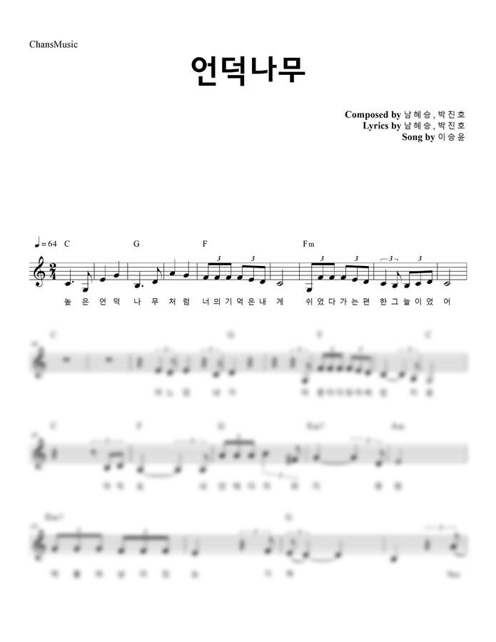 그 해 우리는 OST 언덕나무 피아노 커버 멜로디 악보입니다^^
