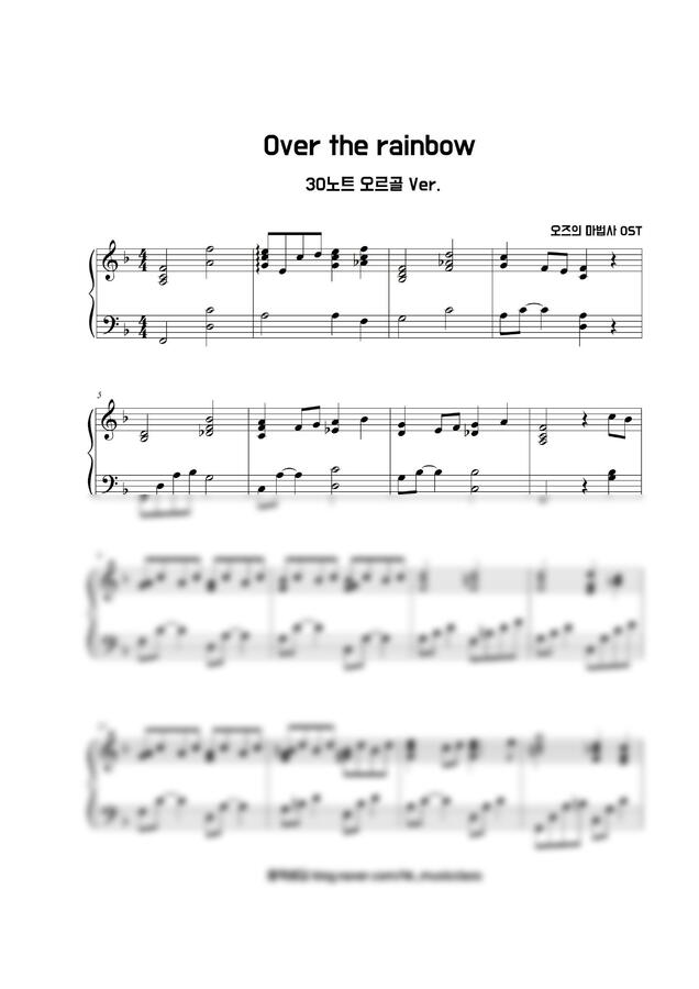 오즈의 마법사 OST - Over the rainbow (쉬운 피아노 악보, 30노트 종이오르골) by 음악새김 1p 미리보기