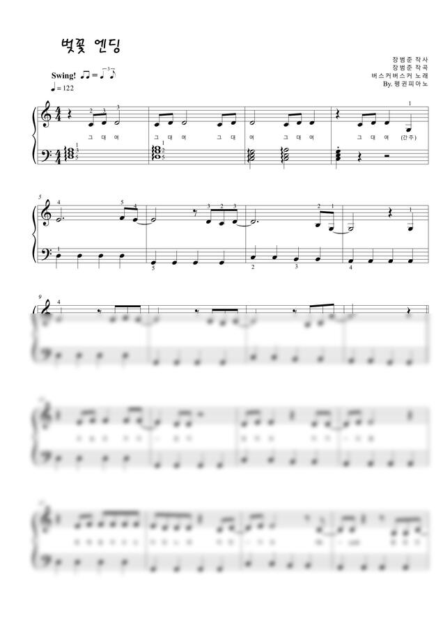 버스커 버스커 - 벚꽃엔딩 (쉬운악보(다장조)) by 펭귄피아노