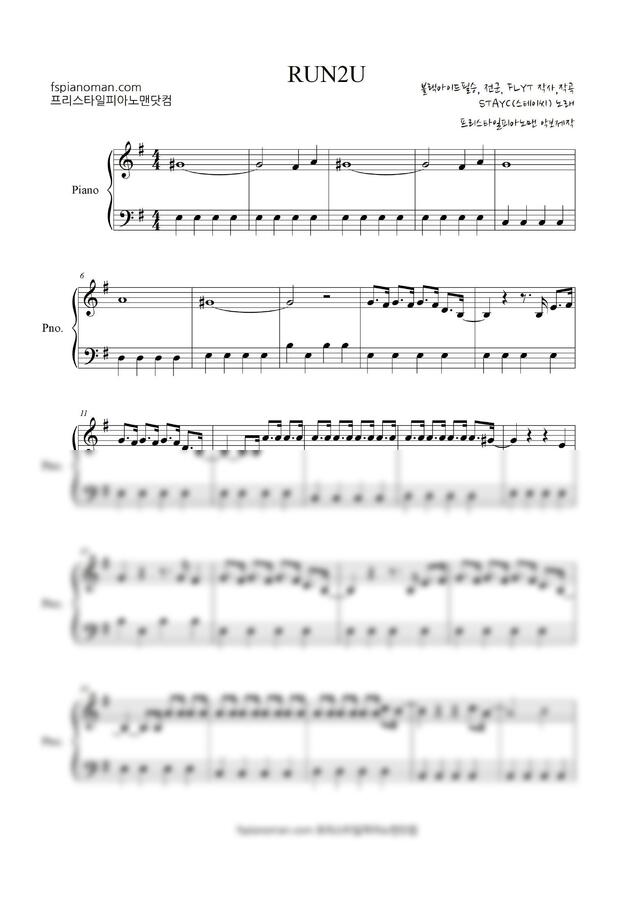 STAYC (스테이씨) - RUN2U(런투유) (쉬운 악보) by 프리스타일피아노맨닷컴1