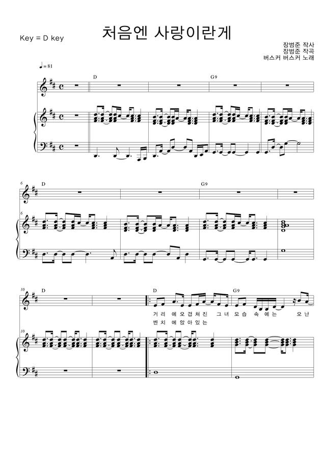 버스커 버스커 - 처음엔 사랑이란게 (피아노 3단)