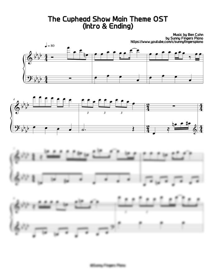 컵헤드쇼 OST - 오프닝 & 엔딩 메인 테마 (쉬운 악보) by Sunny Fingers Piano