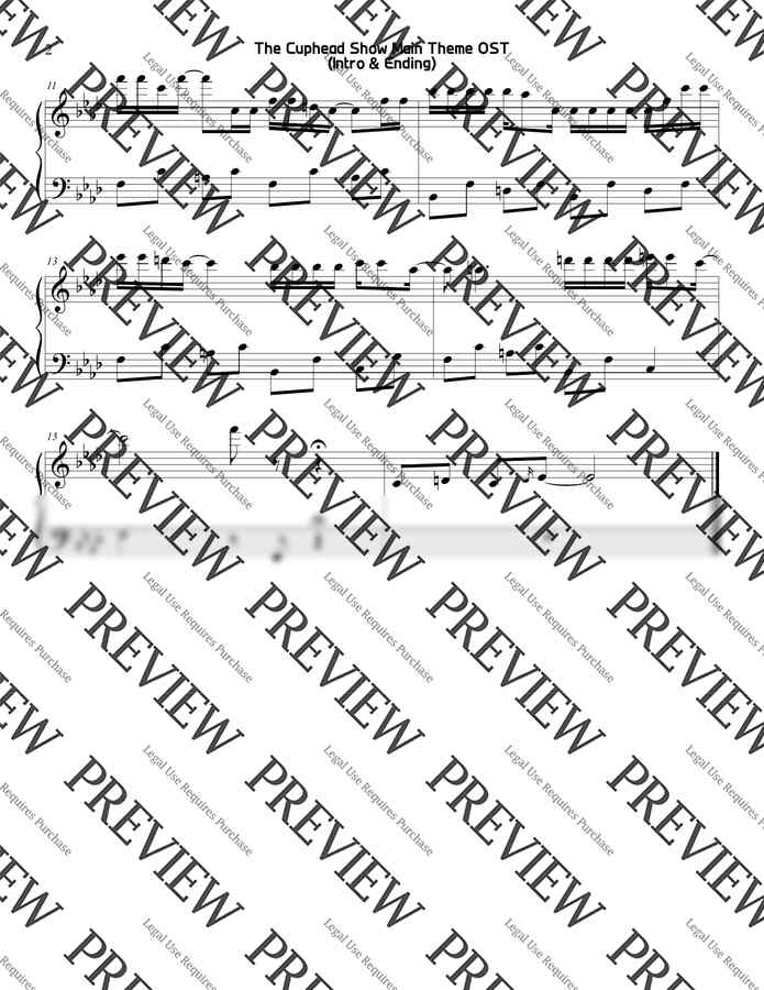 컵헤드쇼 OST - 오프닝 & 엔딩 메인 테마 (쉬운 악보) by Sunny Fingers Piano 1p 미리보기