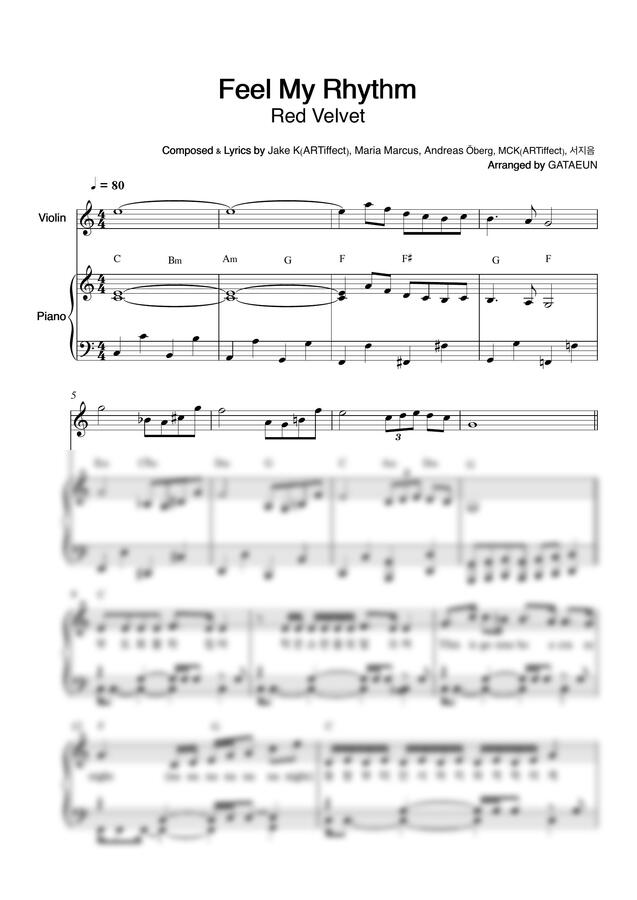 Easy Key(C->D) Ver. 피아노 + 바이올린 선율이 같이 있는 악보입니다