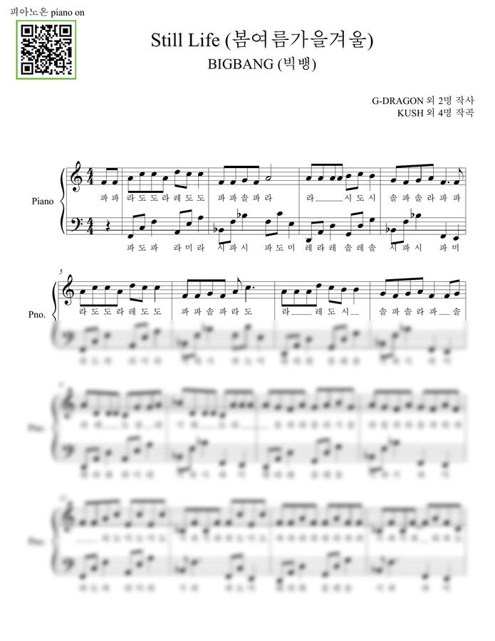 BIGBANG (빅뱅) - 봄여름가을겨울 (Still Life) (다장조,계이름,쉬운악보) by 피아노온 piano on 2p 미리보기