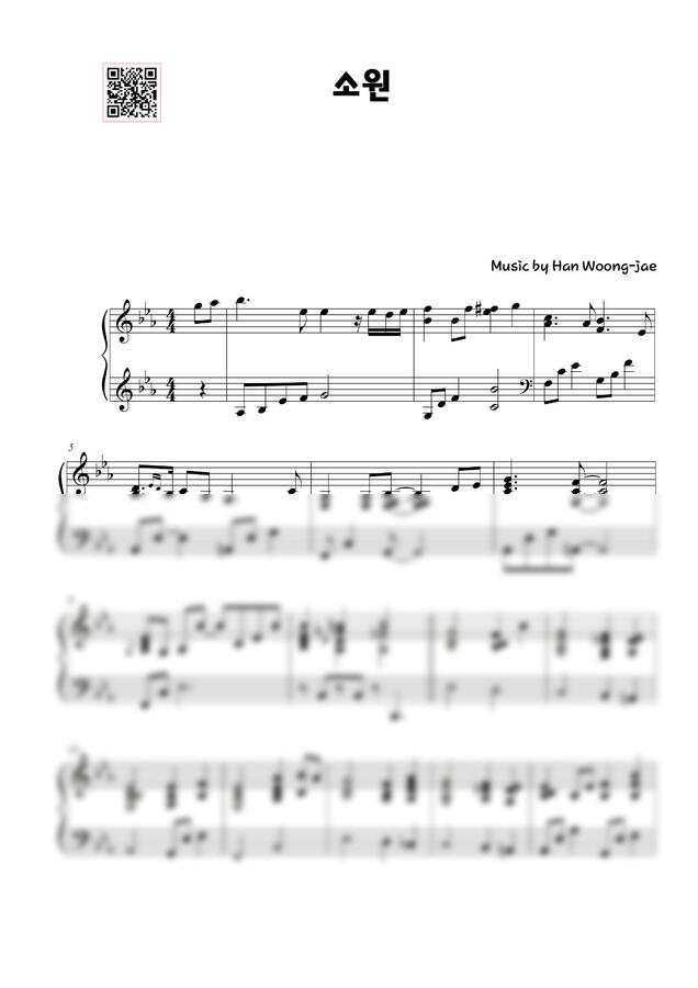 한웅재 목사님의 '소원' 피아노 악보(Eb Key)입니다. ---- (영상은 F# Key, 조금 빠른 템포로 연주해 보았습니다.)