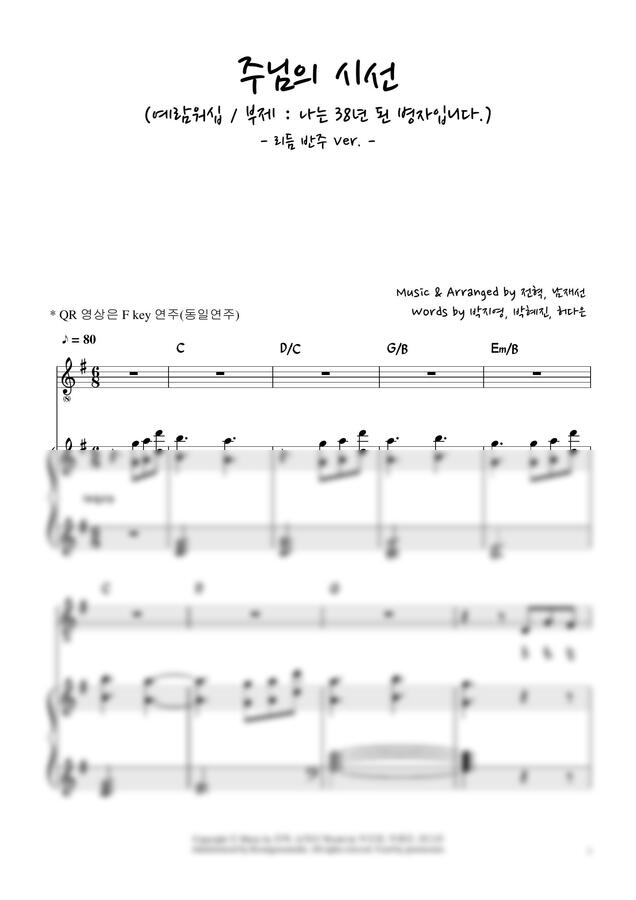 이번 동영상 악보 곡은 "주님의 시선(예람워십Ver.)"입니다.