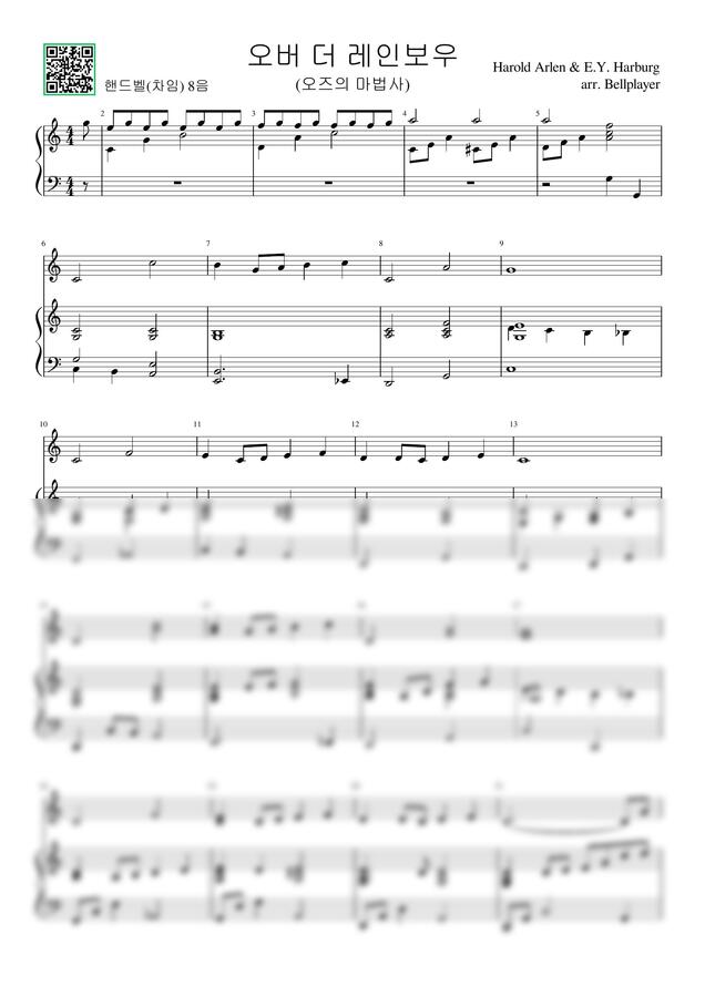 학원이나 학교 학예회 발표시 사용할 수 있는 핸드벨이나 터치벨, 차임 악보로