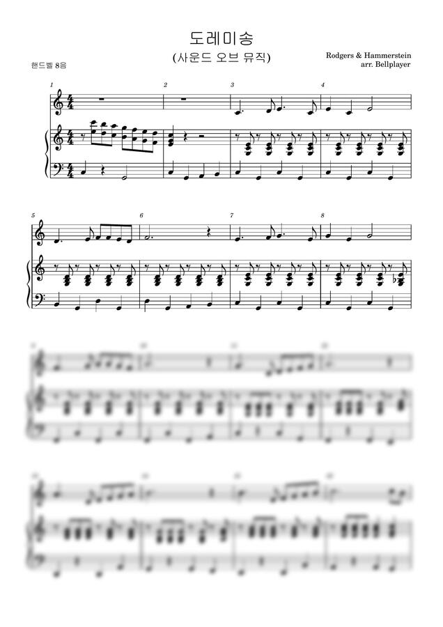 핸드벨8음으로 할 수 있는 도레미송 멜로디와 반주 악보입니다.