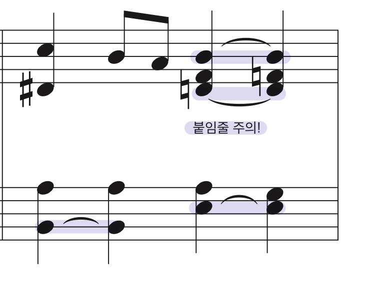 (* 이해를 돕기 위한 예시이며, 악보에는 설명이 되어있지 않은 점 참고 부탁드립니다.)