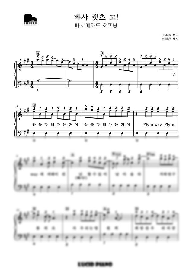 빠샤메카드 오프닝 - 빠샤 렛츠 고! (원곡조성쉬운악보,계이름악보포함) by Lucid Piano0