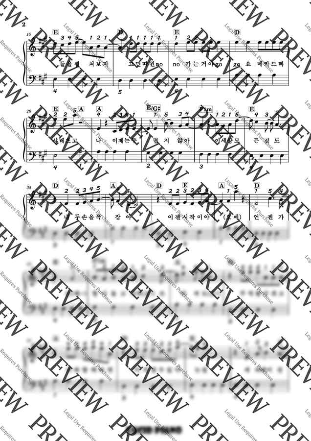 1. 일반 악보 - 계이름이 표시되어 있지 않은 악보로 손가락 번호와 가사,코드는 포함되어 있는 악보입니다.