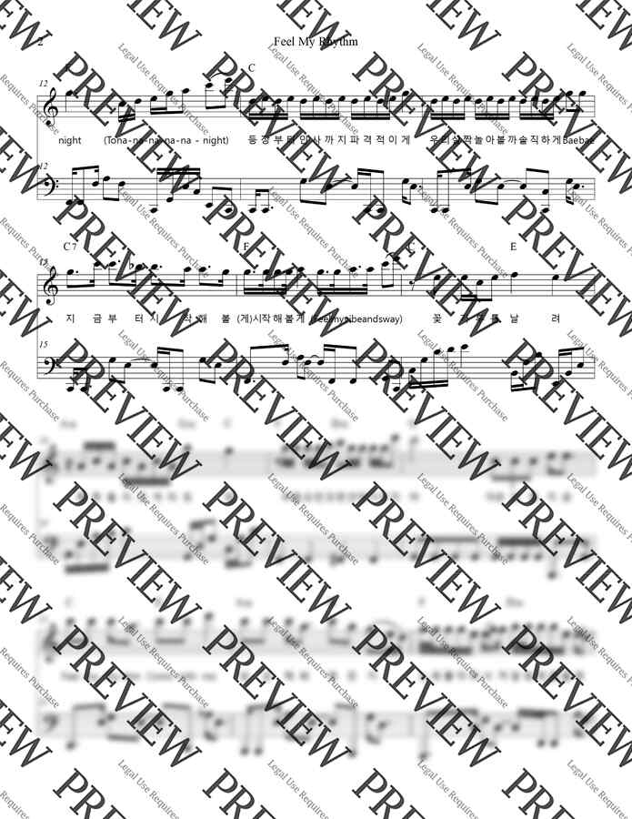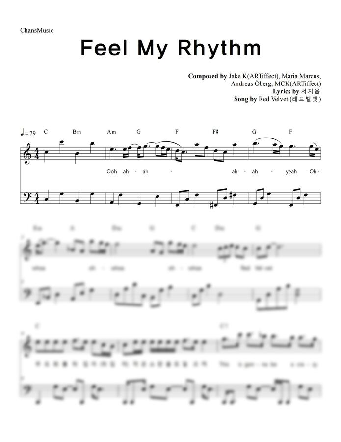 레드벨벳의 필 마이 리듬 피아노 커버 '다장조' 악보입니다^^✅해당 영상에서 다장조(C key)로 조옮김 한 악보입니다❗