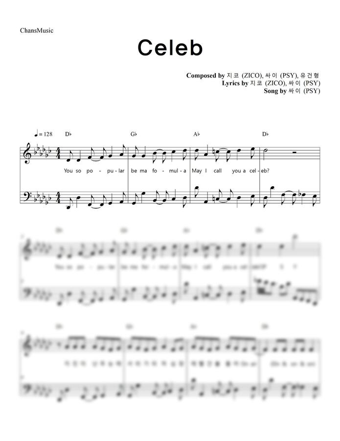 싸이의 셀럽 피아노 커버 악보 쉬운 버전입니다^^