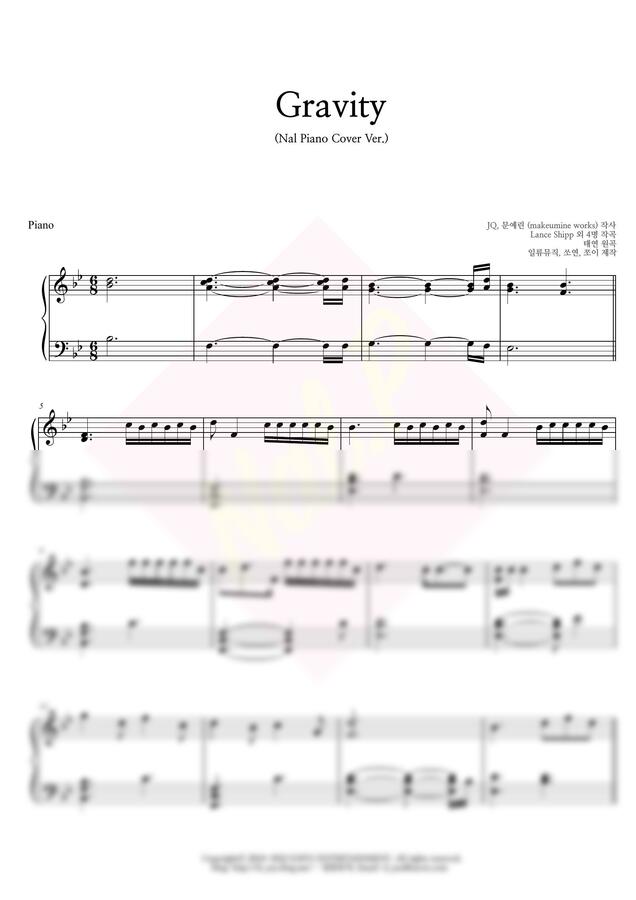 의 'Gravity' 를 왜자꾸날piano 스타일로 편곡, 연주 하였습니다 ☺️
