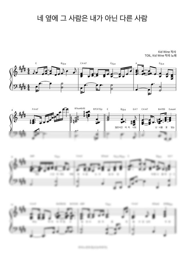 TOIL, Kid Wine - 네 옆에 그 사람은 내가 아닌 다른 사람 (반주악보) by 피아노정류장