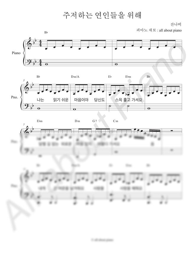 잔나비 - 주저하는 연인들을 위해 (피아노 반주) by all about piano