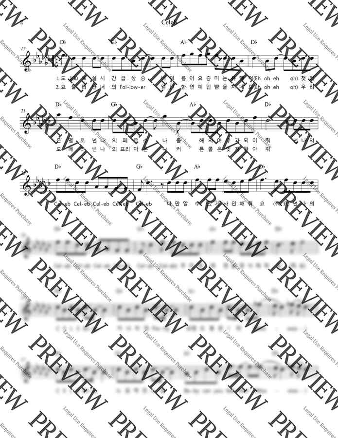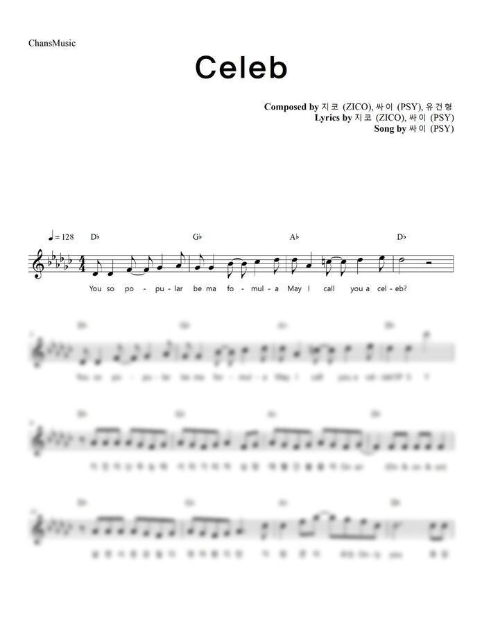 싸이의 셀럽 피아노 커버 멜로디 악보입니다^^