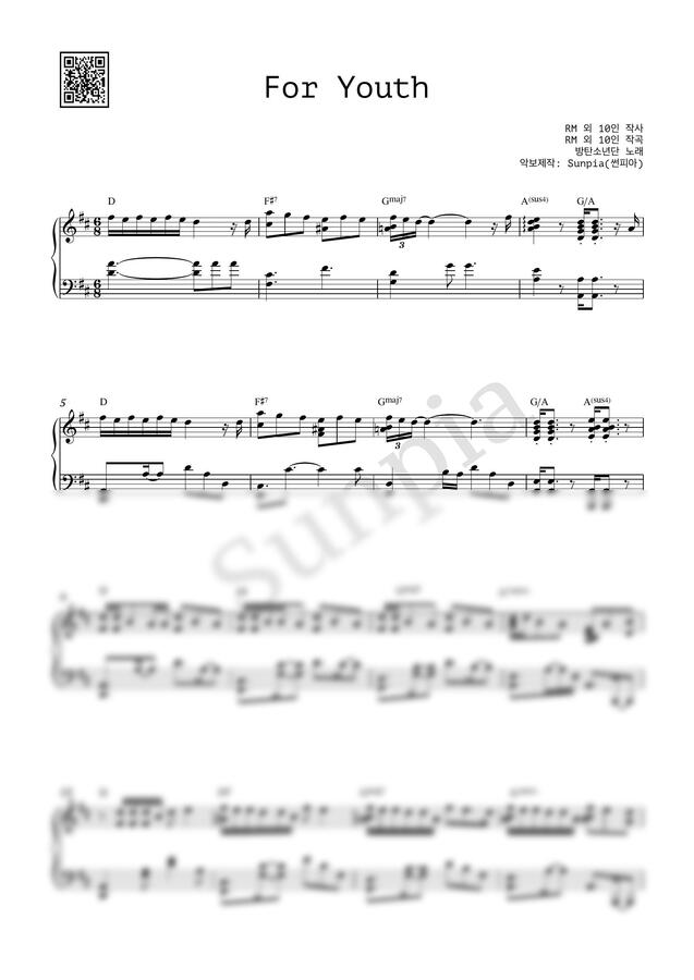 방탄소년단 (BTS) - For Youth (어려운악보) by Sunpia(썬피아) 1p 미리보기