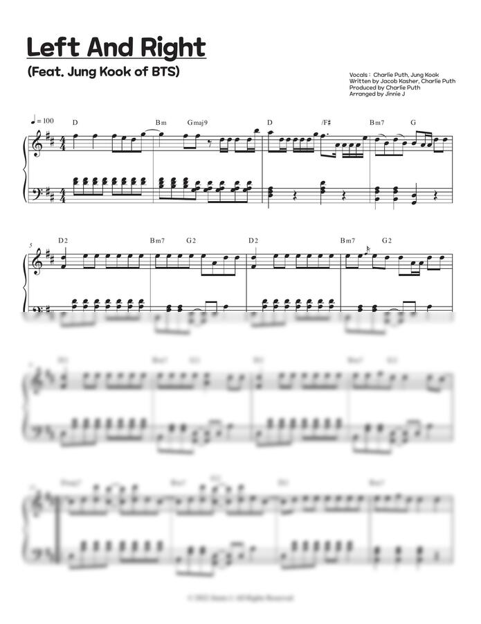 Charlie Puth와 정국이 콜라보한 "Left and Right" 악보입니다.