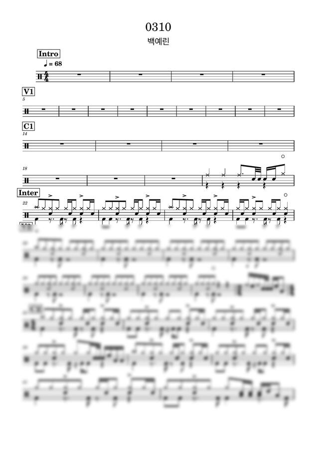 백예린의 0310 드럼악보입니다!