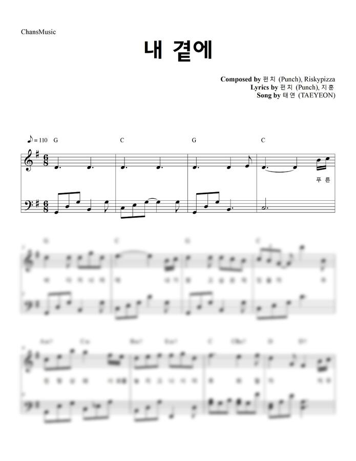 태연이 부른 우리들의 블루스 OST, 내 곁에 피아노 커버 악보 쉬운 버전입니다^^
