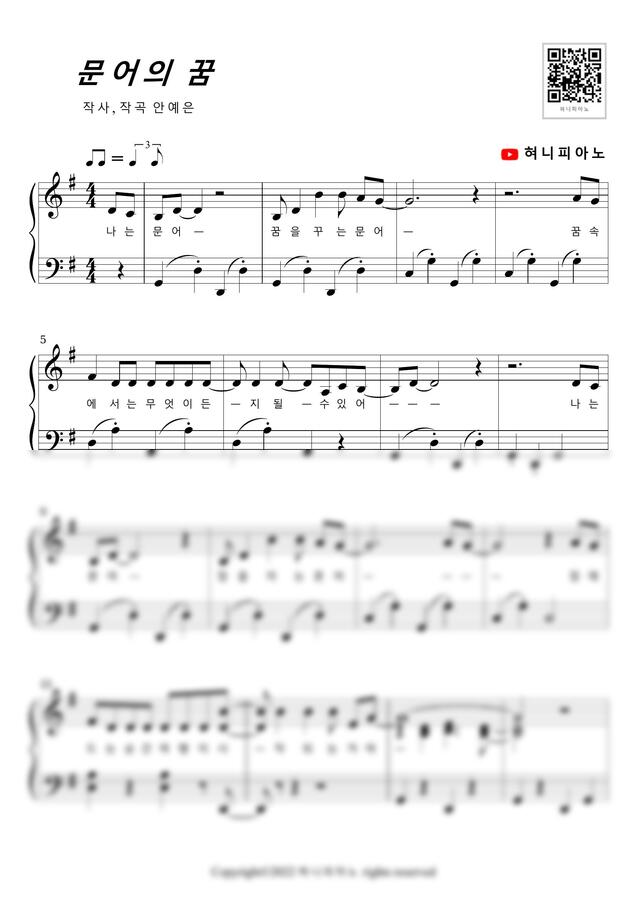 안예은 - 문어의 꿈 (쉬운악보 G key, 1절) by 혀니피아노