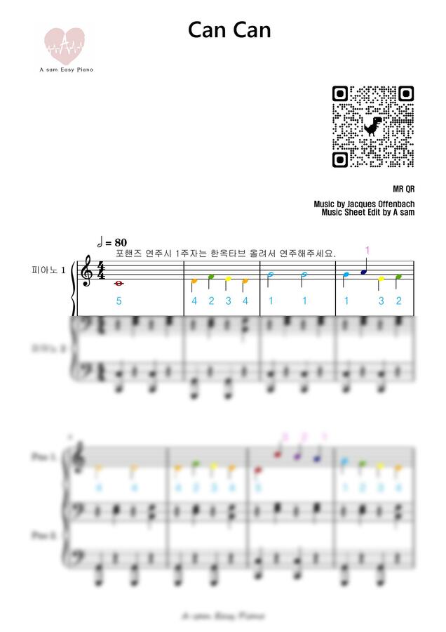 캉캉을 포핸즈 버젼으로 보통의 난이도와 이지 난이도 두가지로 준비하였습니다.