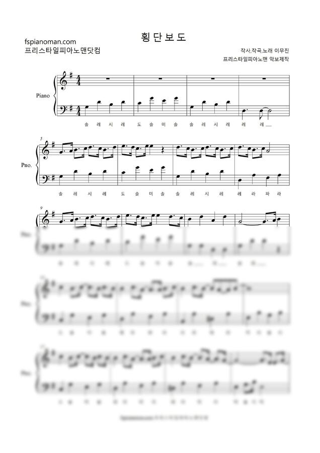 이무진 - 횡단보도(아기싱어) (계이름 악보, 손번호 계이름 악보 포함) by 프리스타일피아노맨닷컴1