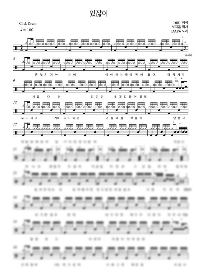 DAY6(데이식스) - 있잖아 (드럼악보,가사포함) by 클릭드럼