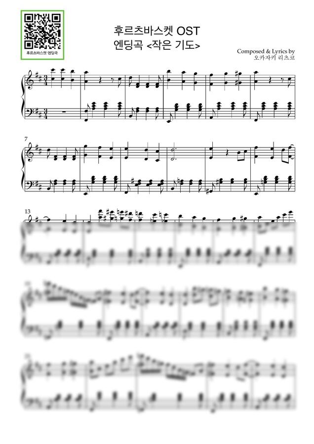후르츠 바스켓 OST - 엔딩곡 : 작은 기도 (참 즐거운 저녁) by 구름사다리뮤직